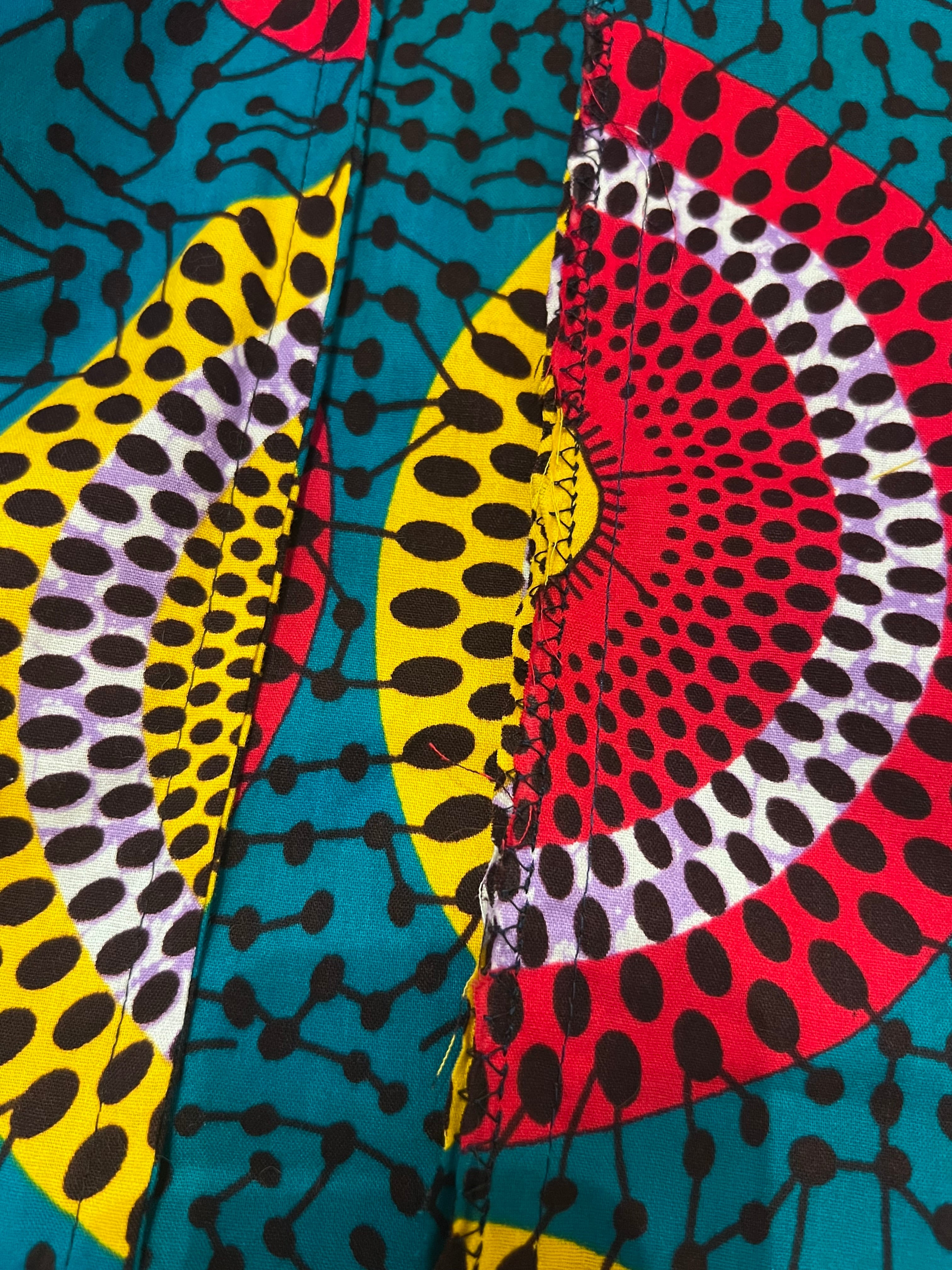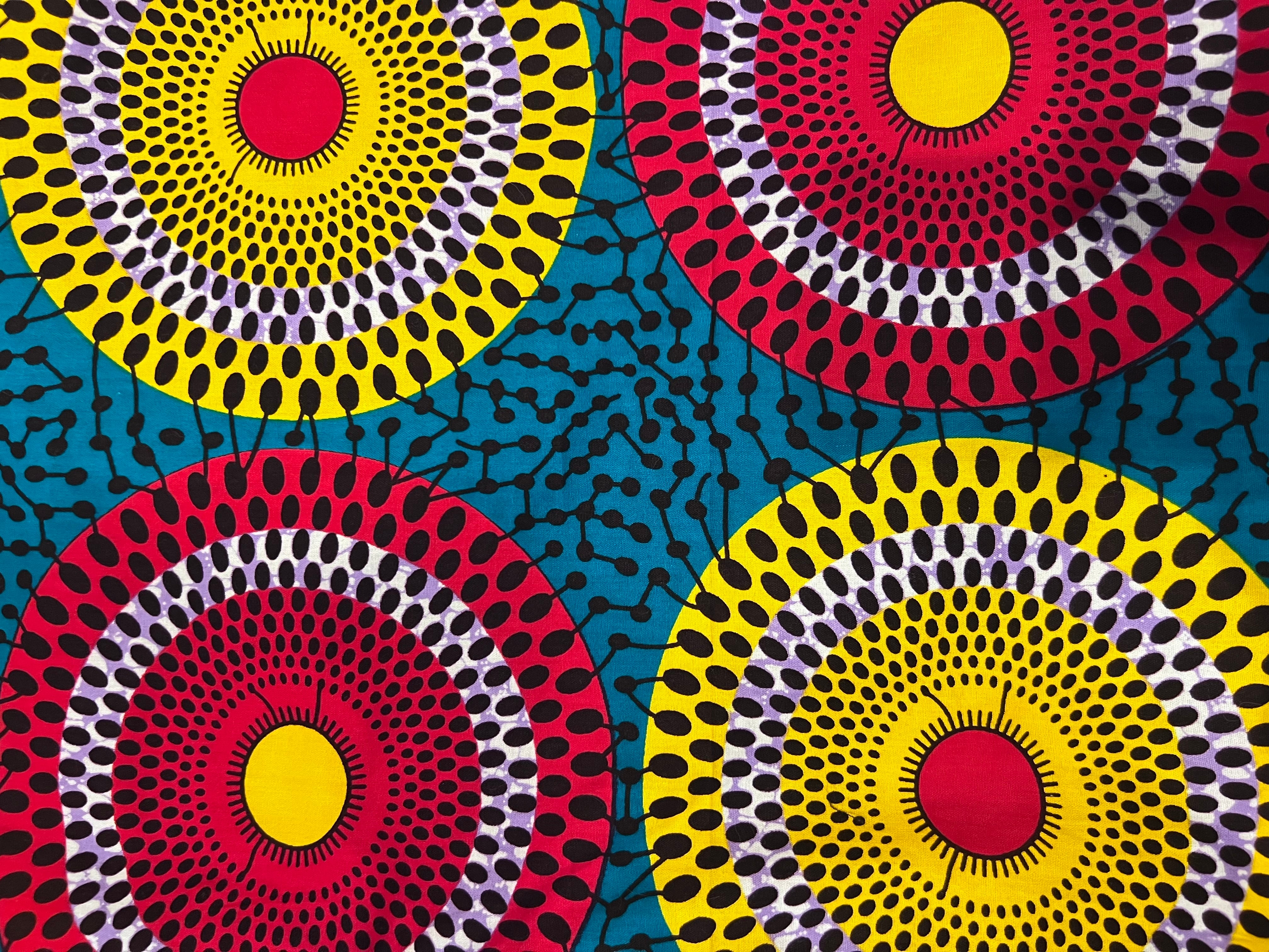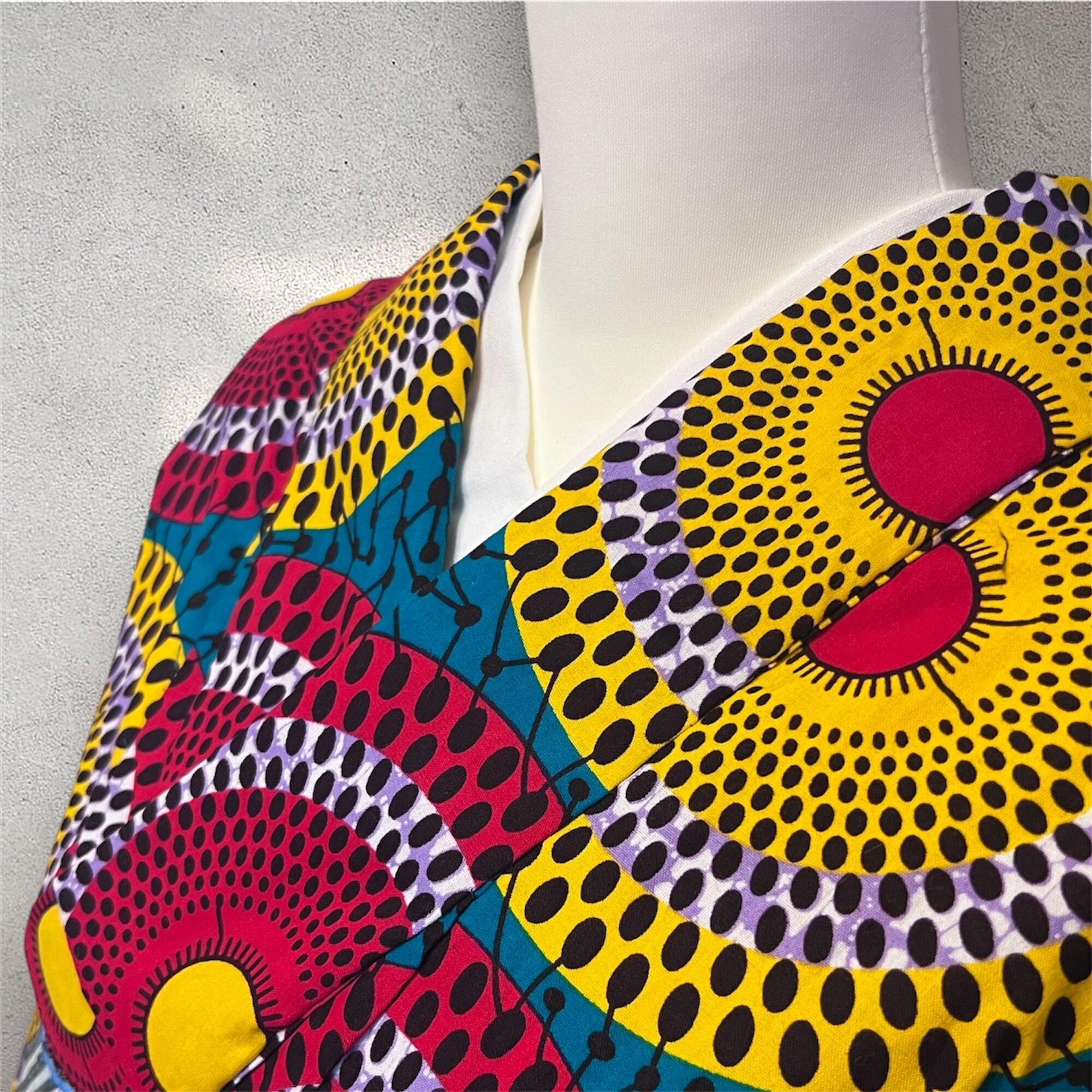 人気のアフリカンワックスの布で仕立てたカラフルな円形模様の浴衣です♪