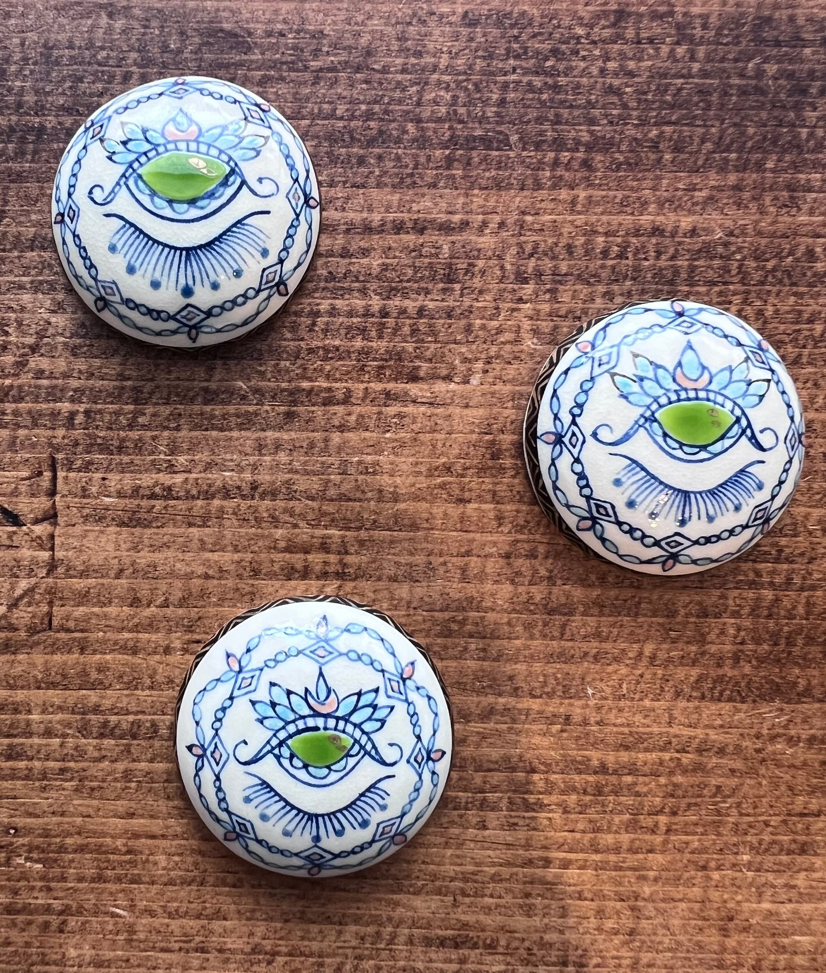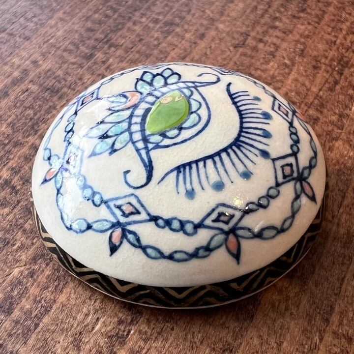 Youtube開設記念に作成した完全オリジナルの「瑞香ノ眼」京都陶磁器の帯留またはブローチです。